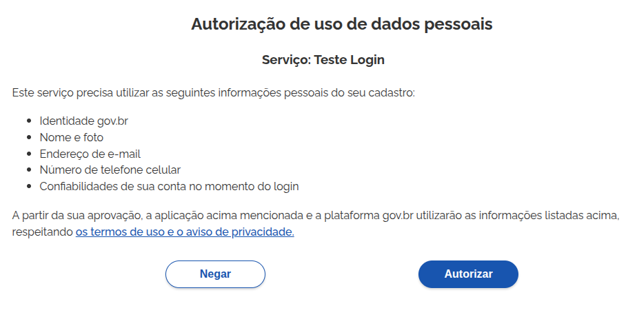 A ausência de acompanhamento das atualizações poderá resultar em falhas de integração ou descontinuidade no serviço, não sendo o gov.br responsável por eventuais prejuízos decorrentes da não observância das instruções técnicas atualizadas.